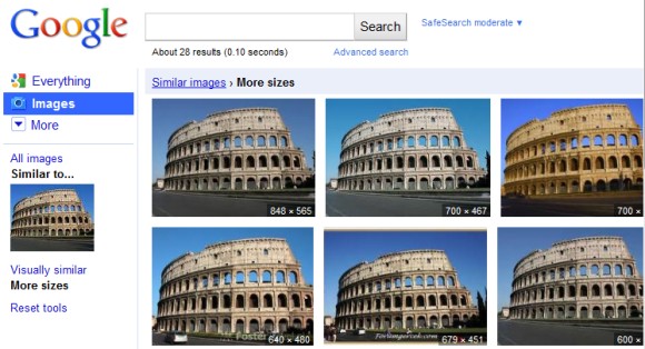 Google Image Search added a feature launched by Bing in March: showing more sizes for each result. If you mouse over an image, there's a new option called "more sizes" that lets you find other versions of the same image. This is useful if you want to find higher-quality version of an image or if you want to list all the sites that include a certain image.